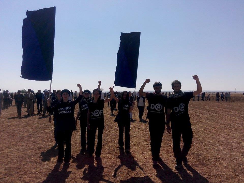 Летом 2013 года мы взяли интервью у турецкой группы Революционное Анархистское Действие (Devrimci Anarşist Faaliyet, DAF) о бунте в парке Гези. В конце лета 2014-го мы узнали, что DAF поддержало тяжёлую борьбу жителей города Кобани на севере Сирии против вторжения фундаменталистов Исламского Государства. Во время гражданской войны в Сирии, которая началась с Арабской весны, Рожава, курдский регион в северной части Сирии, провозгласила свою независимость и начала эксперименты с внутренним устройством.