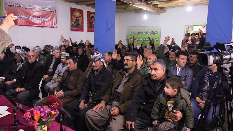 В то же время отметим, что «Народный дом» (mala gel), которых анонимная собеседница критикует за концентрацию власти в своих руках представляют собой не некий «надстоящий институт», а совет второго уровня, в рамках которого работают избранные сопредседатели коммун и профильных комитетов (согласно информации авторов книги «Курдистан. Реальная демократия в условиях войны и блокады» Ани Флах, Эркана Айбоги и Михаэля Кнаппа, стр. 143).
