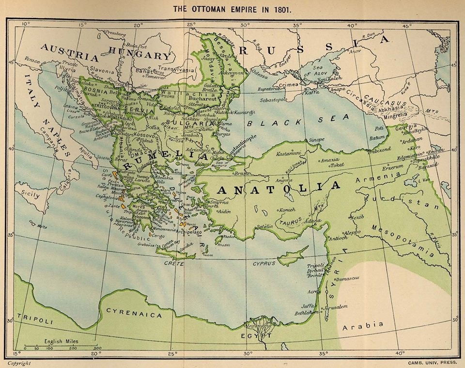 Таким образом, к 1880 году — в отправной точке нашего повествования — империя изрядно съёжилась. Вскоре она потеряла свои последние североафриканские территории (Тунис — в пользу Франции в 1881 году, а в следующем году Египет — в пользу Британии). Оказавшись на проигравшей стороне в Первой Мировой войне, она была окончательно ликвидирована в 1923 году. Под «сердцем Османской империи» мы понимаем территории, входящие в современную Турцию (в том числе — Фракию) и прилегающие к ней ближневосточные земли, ныне занятые такими государствами, как Армения, Сирия и Ливан.