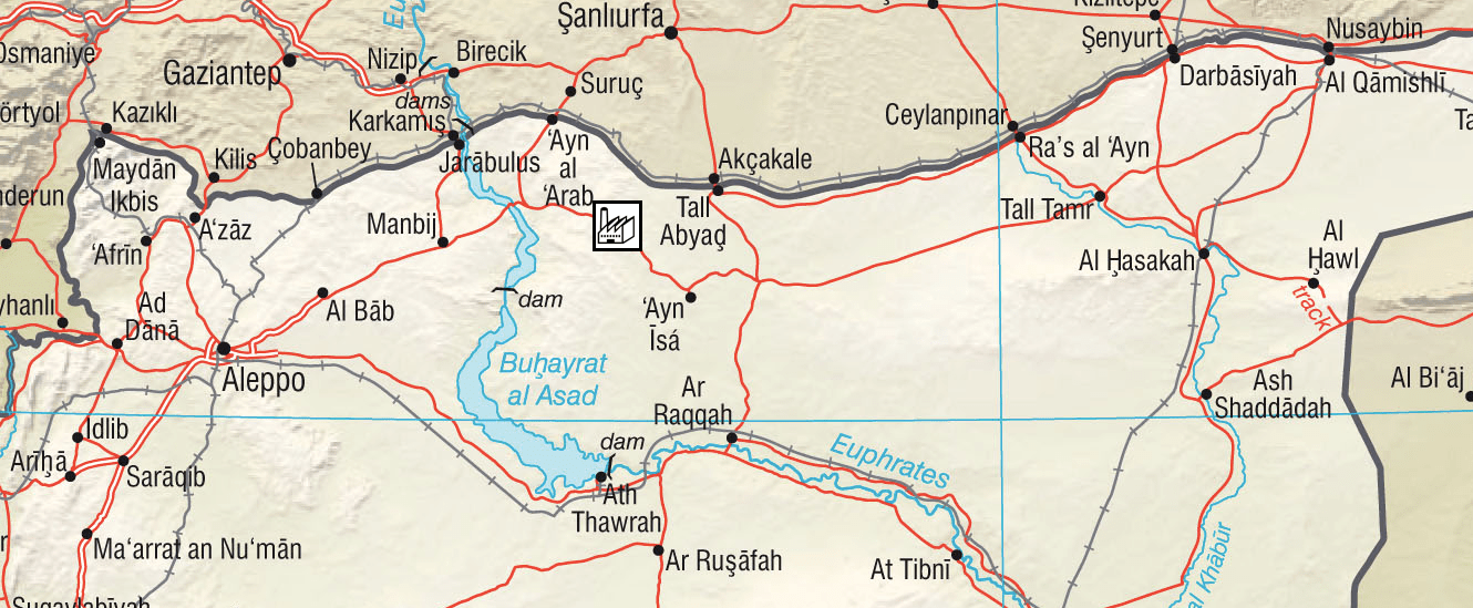 “Район очень изолирован, — вспоминает Якоб Вёрнесс, норвежец, который работал менеджером по управлению рисками на фабрике в период с 2011 по 2013 год. Если поехать на восток от Манбиджа, после пересечения Ефрата, вы наткнетесь на что-то вроде зеленого кармана. По мере продвижения на восток пейзаж становится более суровым и безжизненным, по крайней мере, летом. Зимой может идти небольшой дождь, а иногда даже снег. Весной, когда все начинает расти, появляется тонкий зеленый слой растительности. Появляются стада овец, пасущихся на холмах. Завод находится в этом сухом, каменистом районе, усеянном небольшими, в основном, курдскими деревнями”.